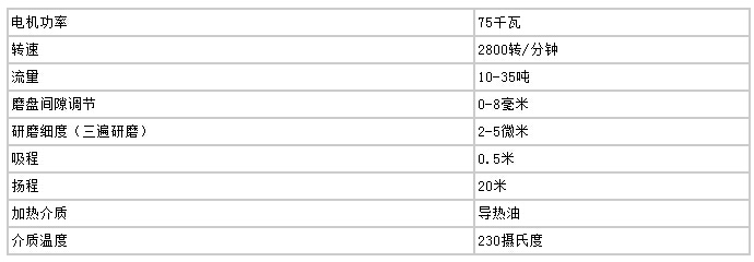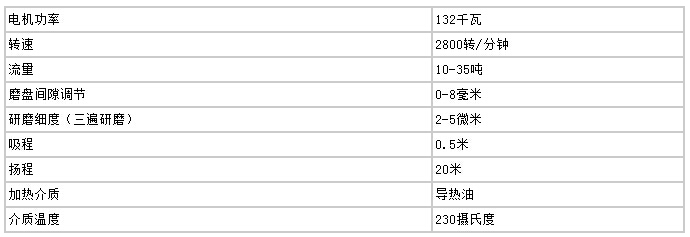 高速剪切均化磨技術(shù)參數(shù)(20T/小時(shí))